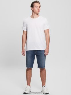 GUESS άνδρες slim κατεστραμμένο τζιν σορτς οπτικό λευκό καταστρέφουν ενδύματα J46DJ3998