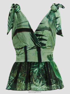 GUESS γυναίκες top ζιβάγκο με λογότυπο quattro g συνδυασμός ιρλανδικής και κρέμας ενδύματα J46DJ1079