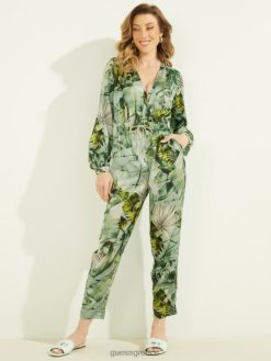 GUESS γυναίκες παντελόνι με εμπριμέ οικολογική βιόλα τύπωμα φύλλου μπανάνας ενδύματα J46DJ2423