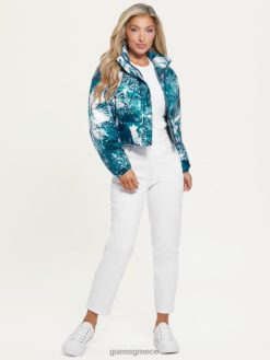 GUESS γυναίκες gabi cropped puffer jacket στάμπα γαλαζοπράσινου κήπου ενδύματα J46DJ1952