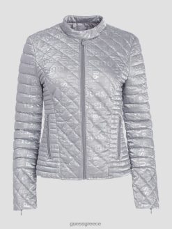 GUESS γυναίκες θαλάσσιο καπιτονέ τζάκετ με παραγάδι σκονισμένο γαλαζοπράσινο ενδύματα J46DJ1963