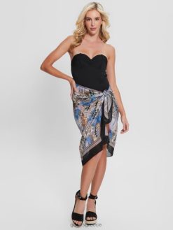 GUESS γυναίκες μακρύ κιμονό από μείγμα μεταξιού θάλασσα και κοχύλι παντού πι ενδύματα J46DJ2562