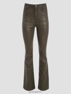 GUESS γυναίκες pop ’70s snakeskin flared παντελόνι σκούρο πράσινο φίδι ενδύματα J46DJ95