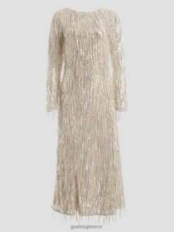 GUESS γυναίκες φόρεμα με κρόσσια από παγιέτες εκρού πολυ ενδύματα J46DJ737