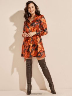 GUESS γυναίκες φόρεμα πουκάμισο με στάμπα φύλλα που πέφτουν ενδύματα J46DJ824