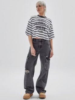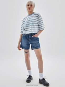 GUESS για άνδρες και γυναίκες αυθεντικό ριγέ cropped πουκάμισο μπλε πολυ ενδύματα J46DJ1280