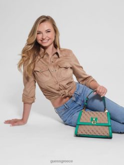 GUESS γυναίκες τσάντα με λογότυπο stephi jacquard επάνω στο χερούλι πράσινος σακούλες J46DJ2970