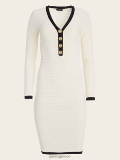 GUESS γυναίκες ριγέ πουλόβερ με ανάγλυφο φόρεμα αμμώδης ακτή/μαύρο ενδύματα J46DJ574