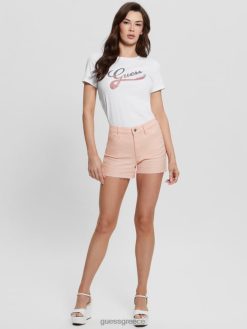 GUESS γυναίκες μπλουζάκι με λογότυπο οικολογικού κρυστάλλου καθαρό λευκό ενδύματα J46DJ1177