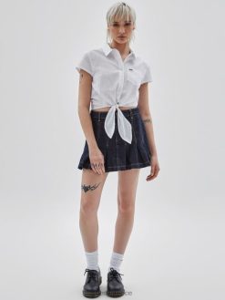 GUESS για άνδρες και γυναίκες αυθεντικό πουκάμισο με γραβάτα μπροστά καθαρό λευκό ενδύματα J46DJ1355