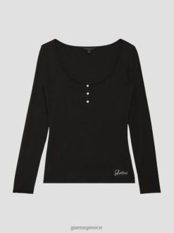 GUESS γυναίκες eco karlee μακρυμάνικο henley μαύρος ενδύματα J46DJ1517