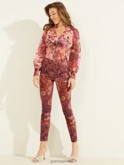 GUESS γυναίκες eco charley top Μπατίκ τροπικό στάμπα ροζ ενδύματα J46DJ1639