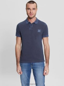 GUESS άνδρες μπλουζάκι με λαιμόκοψη mason yoke μπλε κομψό ενδύματα J46DJ3981