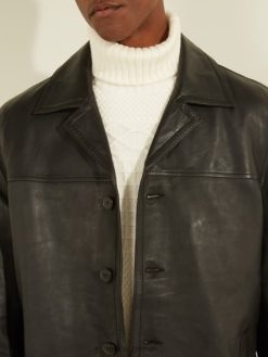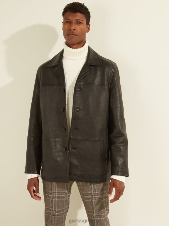 GUESS άνδρες δερμάτινο παλτό αυτοκινήτου μαύρος ενδύματα J46DJ4109