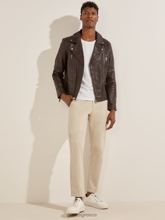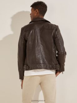 GUESS άνδρες δερμάτινο biker jacket Μπραουνι σοκολάτας ενδύματα J46DJ4106