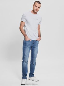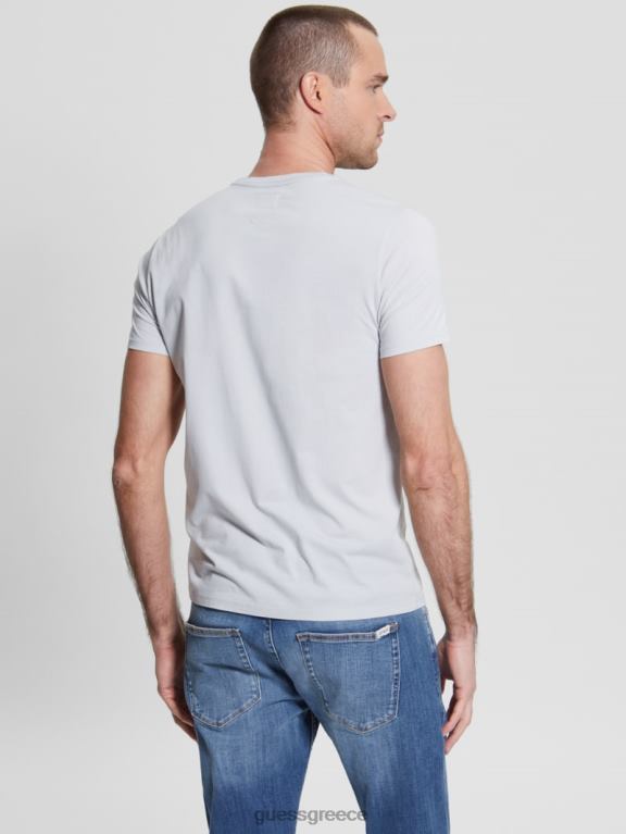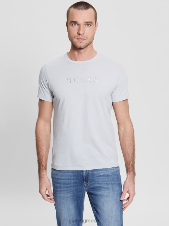 GUESS άνδρες κεντημένο μπλουζάκι με λογότυπο γκρι μαργαριτάρι ενδύματα J46DJ4098