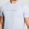 GUESS άνδρες κεντημένο μπλουζάκι με λογότυπο τίμιο μπλε ενδύματα J46DJ4037