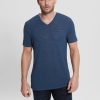 GUESS άνδρες μπλουζάκι με λαιμόκοψη mason yoke μπλε κομψό ενδύματα J46DJ3981