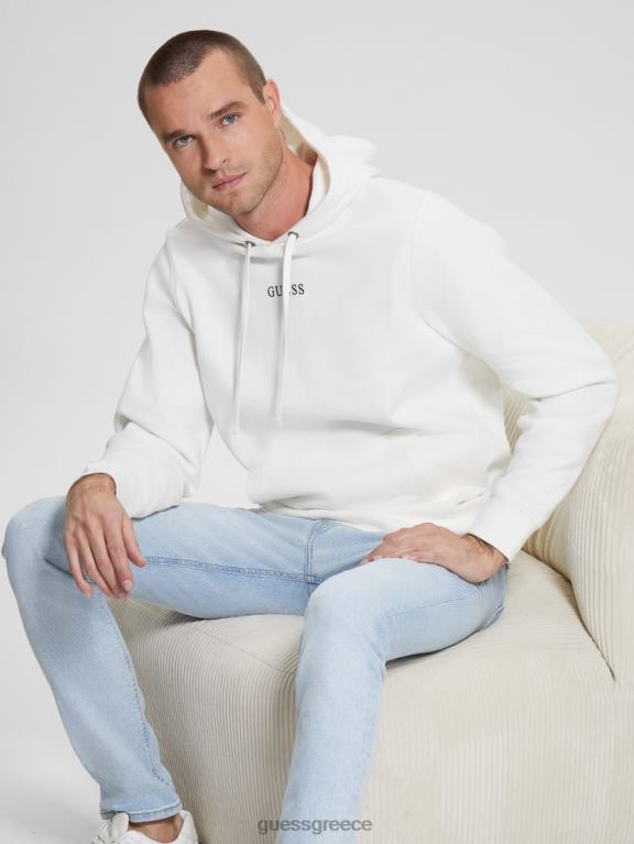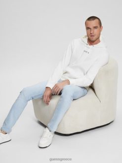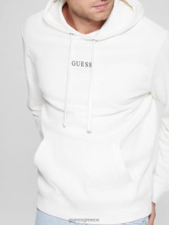 GUESS άνδρες κουκούλα με κεντημένο λογότυπο eco roy παγωμένο λευκό ενδύματα J46DJ4051