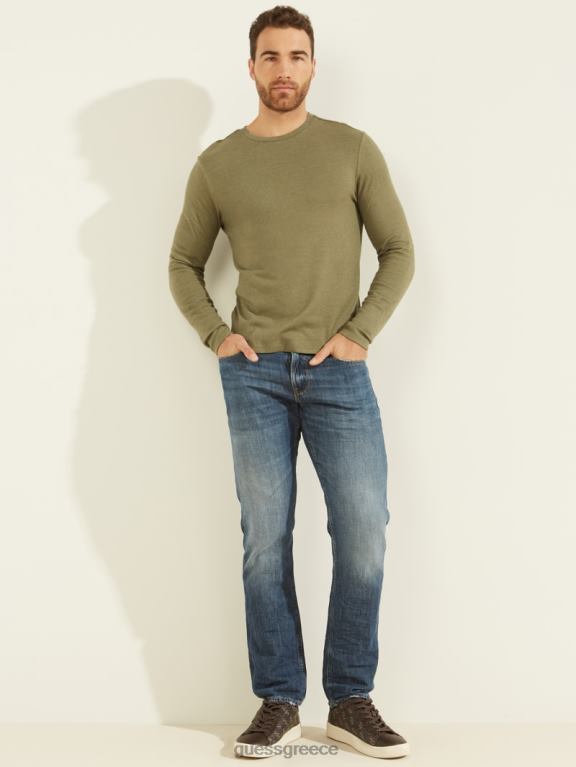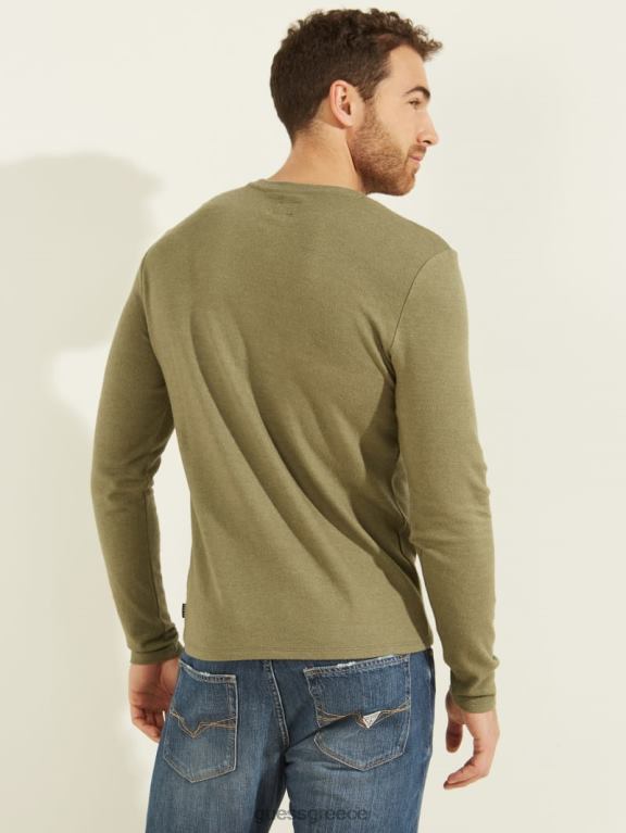GUESS άνδρες μακρυμάνικο άνετο μπλουζάκι στρατός ελιά πολυ ενδύματα J46DJ4135
