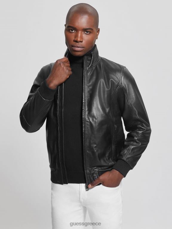 GUESS άνδρες μαλακό δερμάτινο μπουφάν μαύρος ενδύματα J46DJ3953