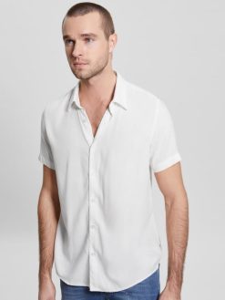 GUESS άνδρες μασίφ πουκάμισο οικολογικό ρεγιόν αλάτι λευκό ενδύματα J46DJ4007