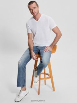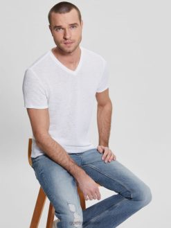 GUESS άνδρες μπλουζάκι γάζας καθαρό λευκό ενδύματα J46DJ4004