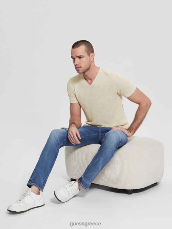GUESS άνδρες οικολογικό μπλουζάκι από λινό με λαιμόκοψη smart blue multi ενδύματα J46DJ4038