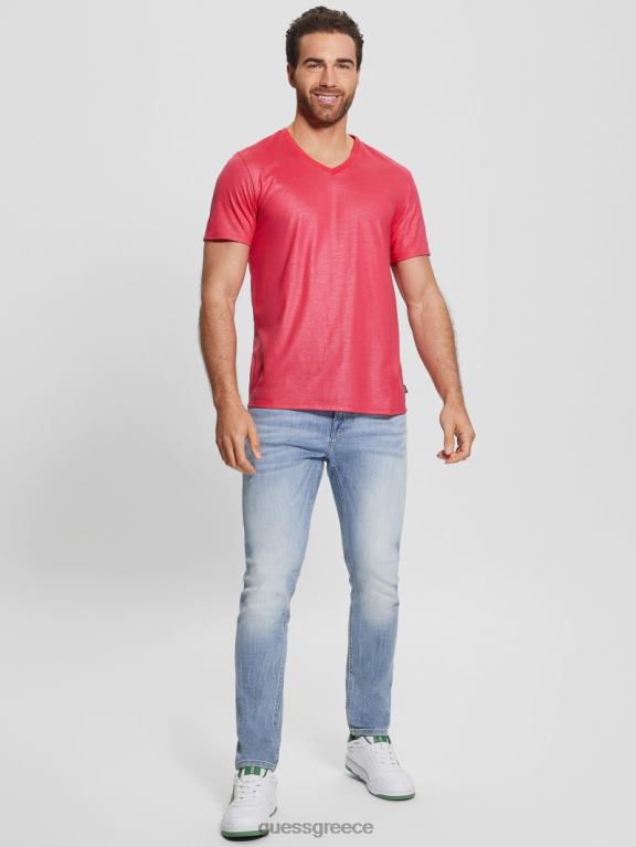 GUESS άνδρες μπλουζάκι με λαιμόκοψη mason yoke εικονικό ροζ ενδύματα J46DJ4057