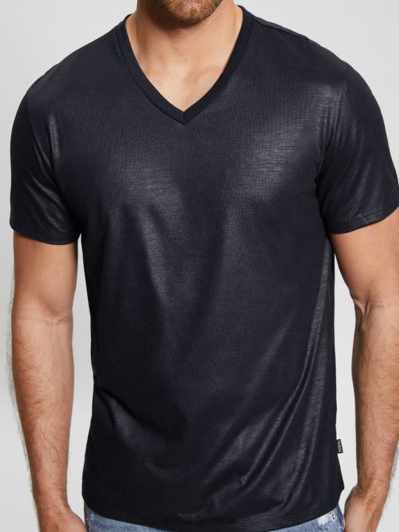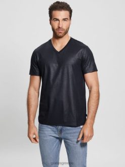 GUESS άνδρες μπλουζάκι με λαιμόκοψη mason yoke μαύρος ενδύματα J46DJ3974