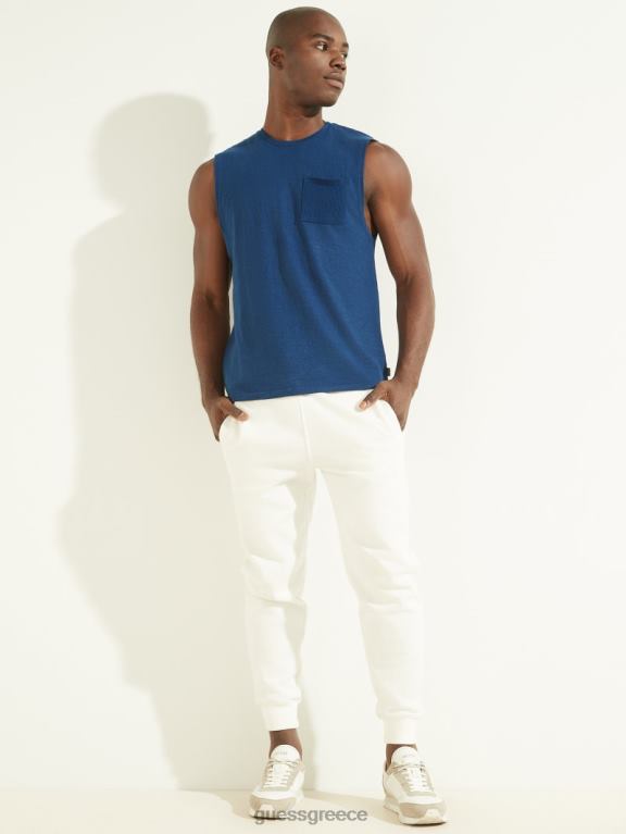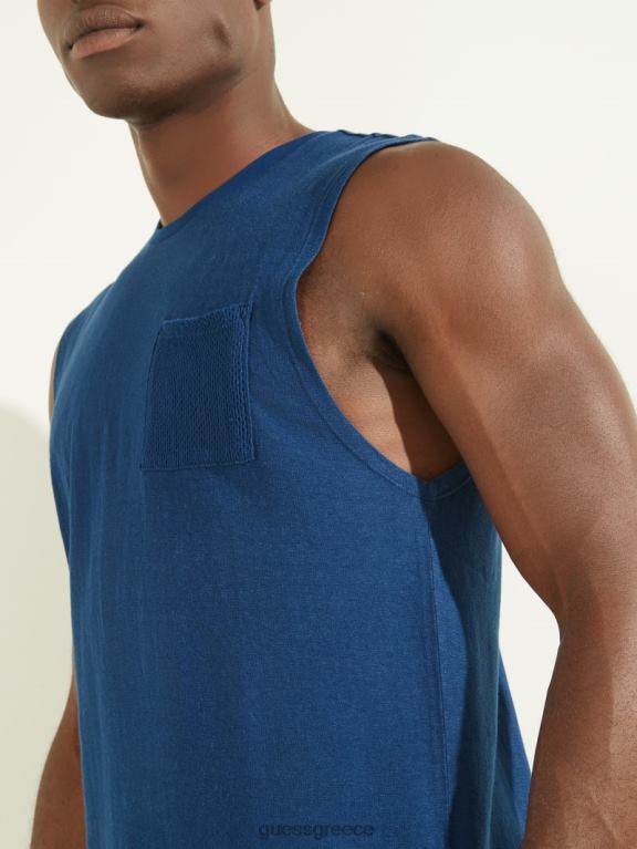 GUESS άνδρες μυϊκό μπλουζάκι από βαμβάκι κάνναβης rigel blue multi ενδύματα J46DJ4073