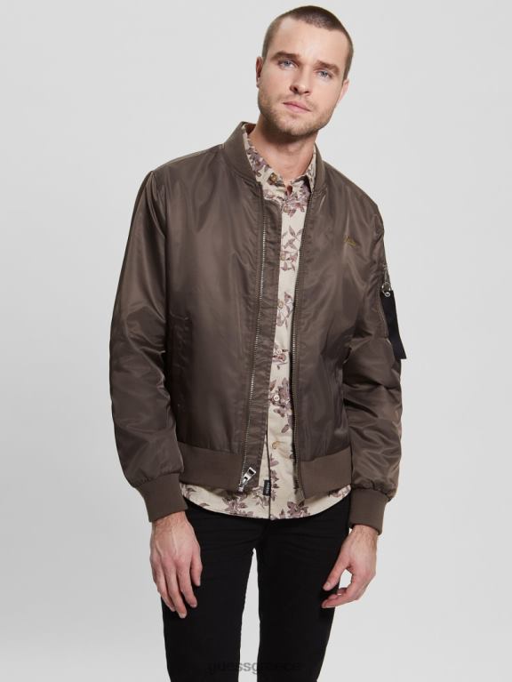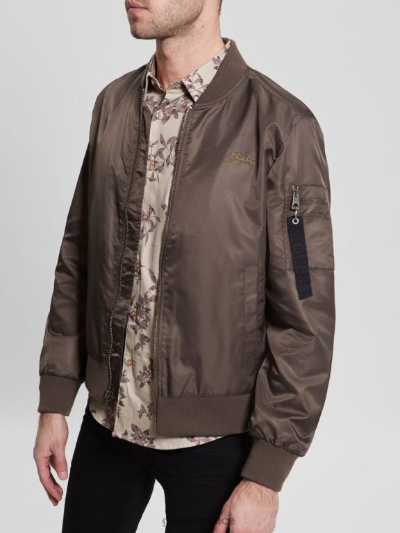 GUESS άνδρες νάιλον σακάκι πτήσης σοκολάτα χαρουπιού ενδύματα J46DJ4159