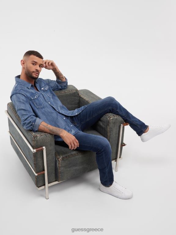 GUESS άνδρες ξεθωριασμένα στενά τζιν πλύσιμο olvera ενδύματα J46DJ3980