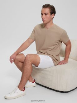 GUESS άνδρες οικολογικό μπλουζάκι από λινό με λαιμόκοψη καθαρό λευκό multi ενδύματα J46DJ3992