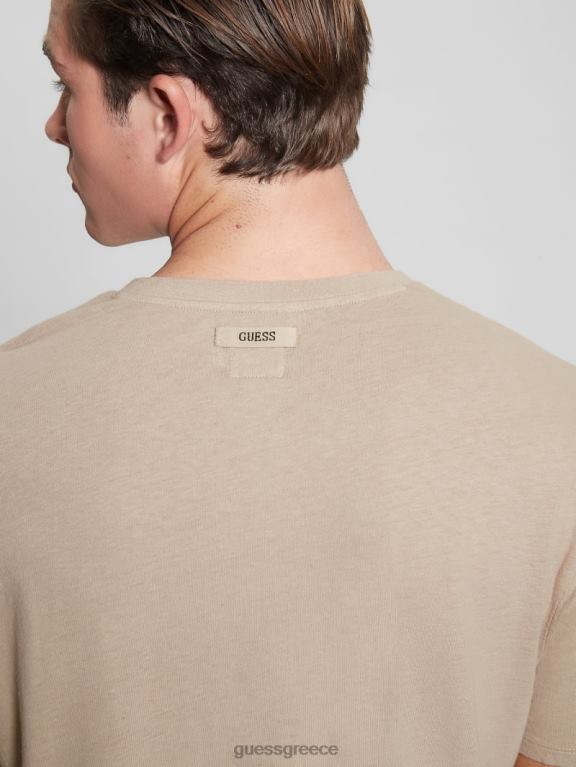 GUESS άνδρες οικολογικό μπλουζάκι από λινό με λαιμόκοψη pasadena stone multi ενδύματα J46DJ4032