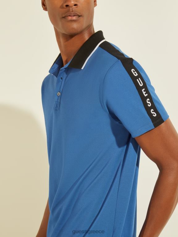 GUESS άνδρες πικέ λογότυπο ταινία πόλο ηλεκτρικό ζαφείρι ενδύματα J46DJ4093
