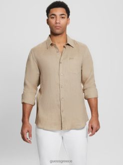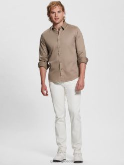 GUESS άνδρες πουκάμισο πόλο σε ταινία του Πολ Πικέ κρέμα βανίλιας ενδύματα J46DJ4180
