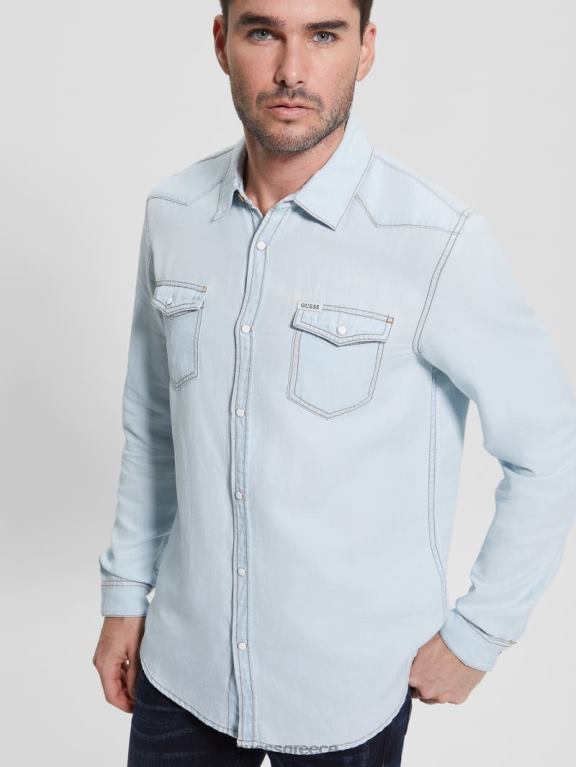 GUESS άνδρες τζιν γουέστερν πουκάμισο truckee ψευδαισθήσεις ενδύματα J46DJ4026