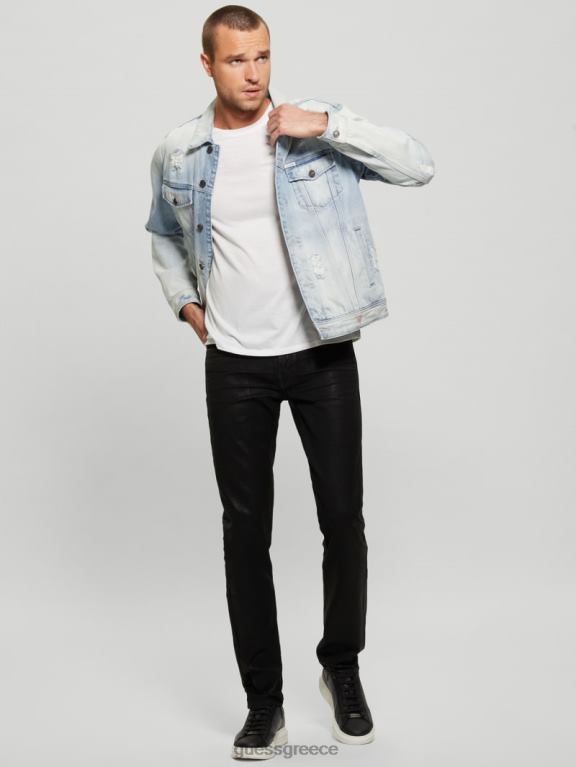 GUESS άνδρες δερμάτινο biker jacket μαύρος ενδύματα J46DJ4116