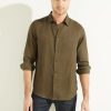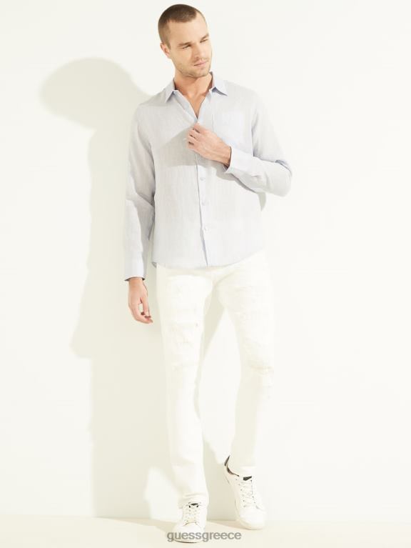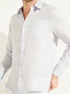 GUESS άνδρες eco island λινό πουκάμισο μπλε αεραγωγών ενδύματα J46DJ4119