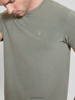GUESS άνδρες eli πλυμένο μπλουζάκι ζούγκλα πράσινα πολυ ενδύματα J46DJ4133