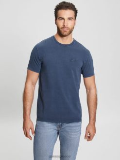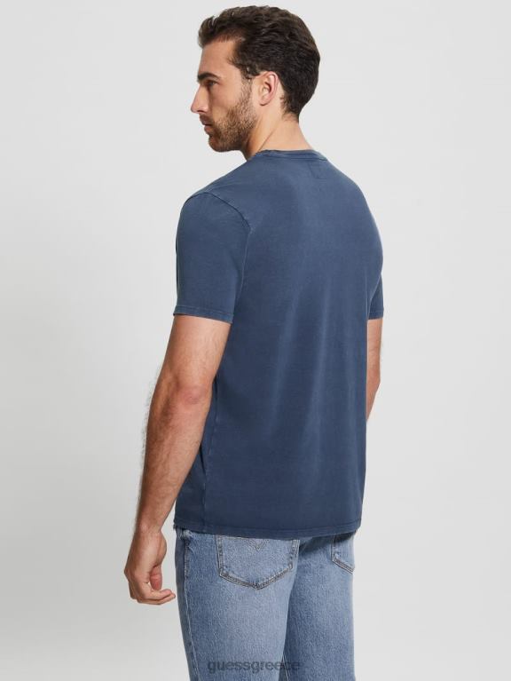 GUESS άνδρες eli πλυμένο μπλουζάκι μαυρισμένο μπλε multi ενδύματα J46DJ4163