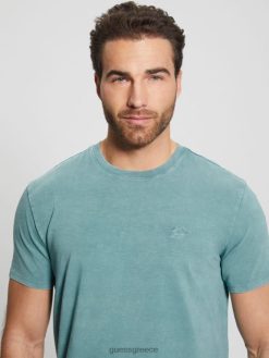 GUESS άνδρες eli πλυμένο μπλουζάκι τίμιο μπλε πολυ ενδύματα J46DJ4035