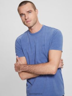 GUESS άνδρες eli πλυμένο μπλουζάκι τίμιο μπλε πολυ ενδύματα J46DJ4035
