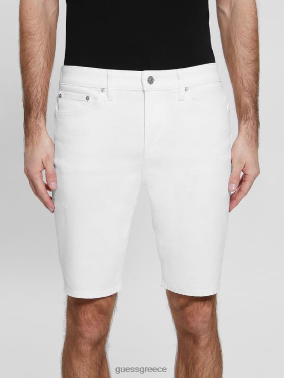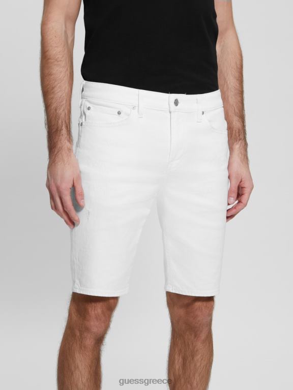GUESS άνδρες slim κατεστραμμένο τζιν σορτς οπτικό λευκό καταστρέφουν ενδύματα J46DJ3998