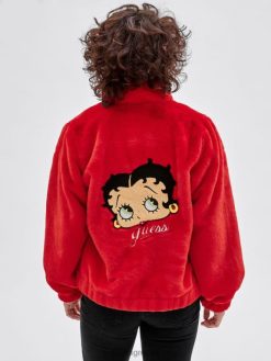 GUESS για άνδρες και γυναίκες αυθεντικά x μπουφάν betty boop faux-fun γρήγορο κόκκινο ενδύματα J46DJ1833