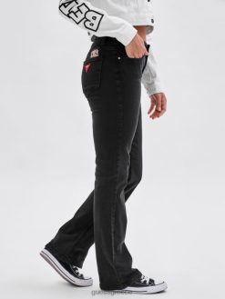 GUESS για άνδρες και γυναίκες αυθεντικά τζιν με φαρδύ τζιν με δαντέλα μαύρος ενδύματα J46DJ149