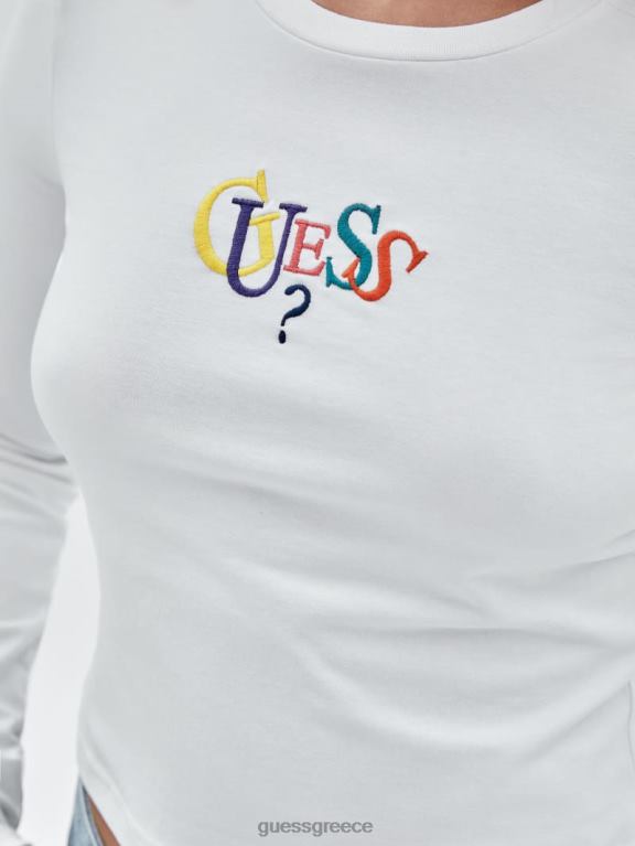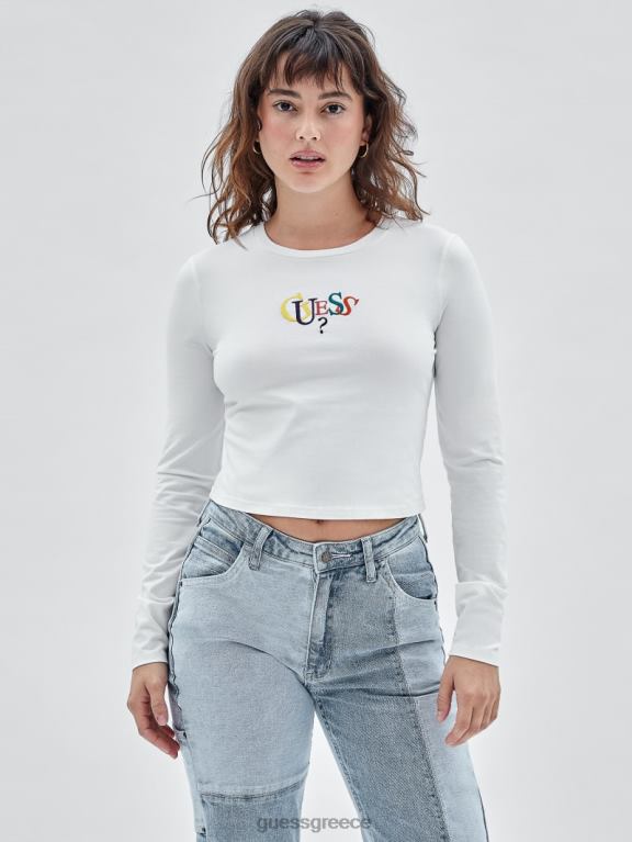 GUESS για άνδρες και γυναίκες αυθεντικό μακρυμάνικο λογότυπο τοπ καθαρό λευκό multi ενδύματα J46DJ1380