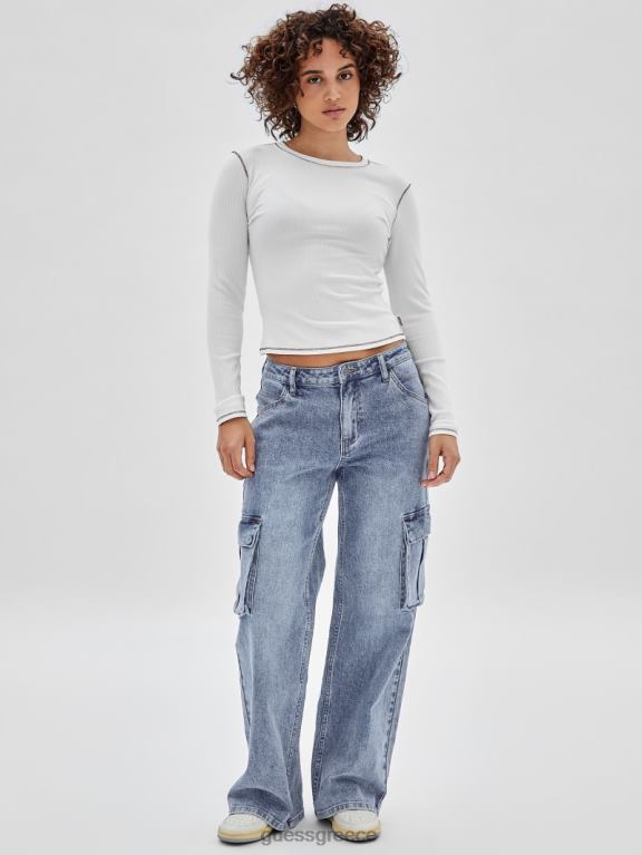 GUESS για άνδρες και γυναίκες αυθεντικό μακρυμάνικο μπλουζάκι καθαρό λευκό ενδύματα J46DJ1375