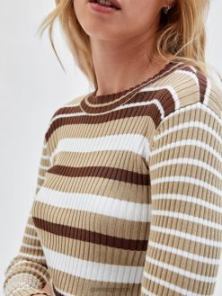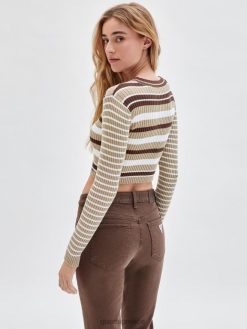 GUESS για άνδρες και γυναίκες αυθεντικό οικολογικό πουλόβερ με ραβδώσεις καφέ δρυς πολυ ενδύματα J46DJ1360
